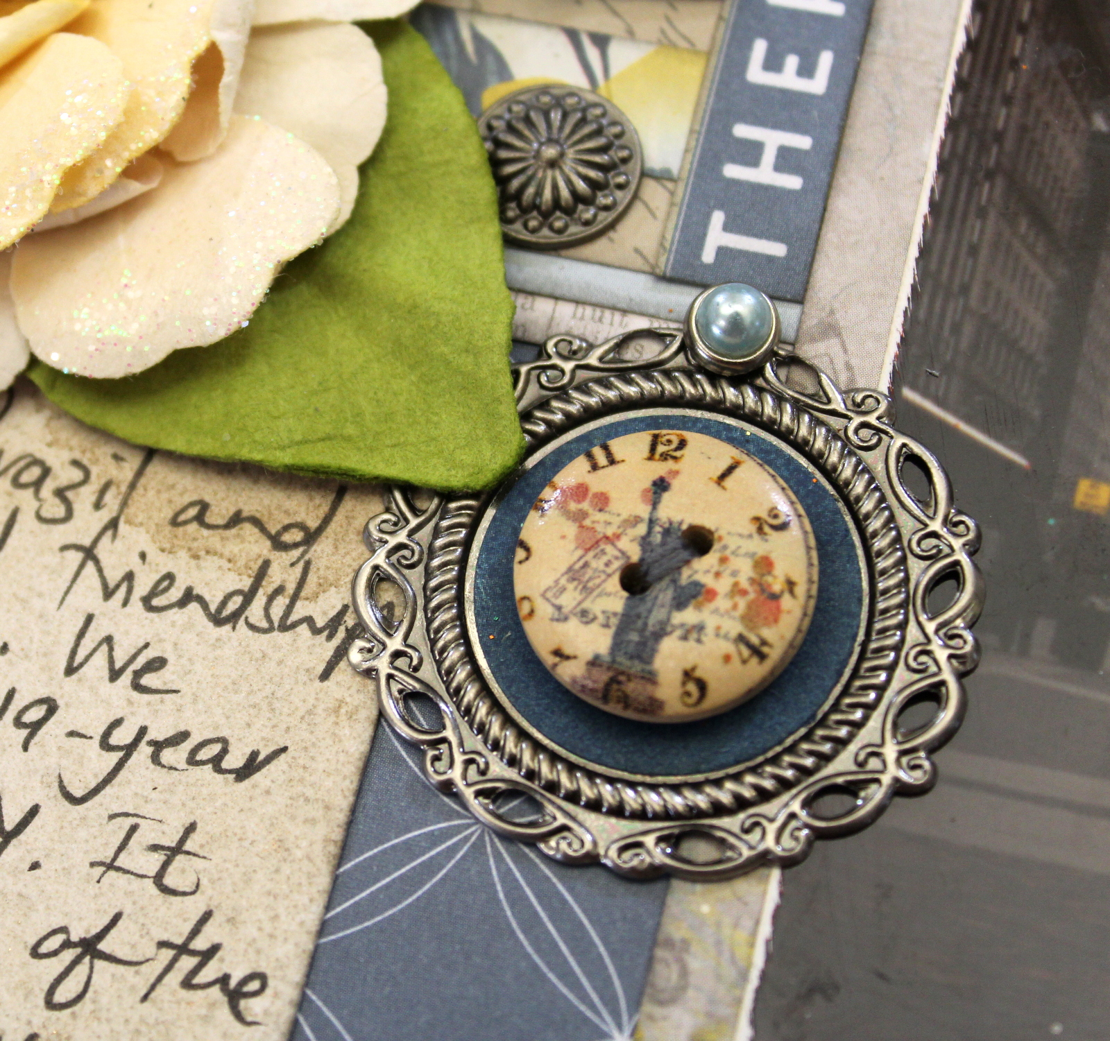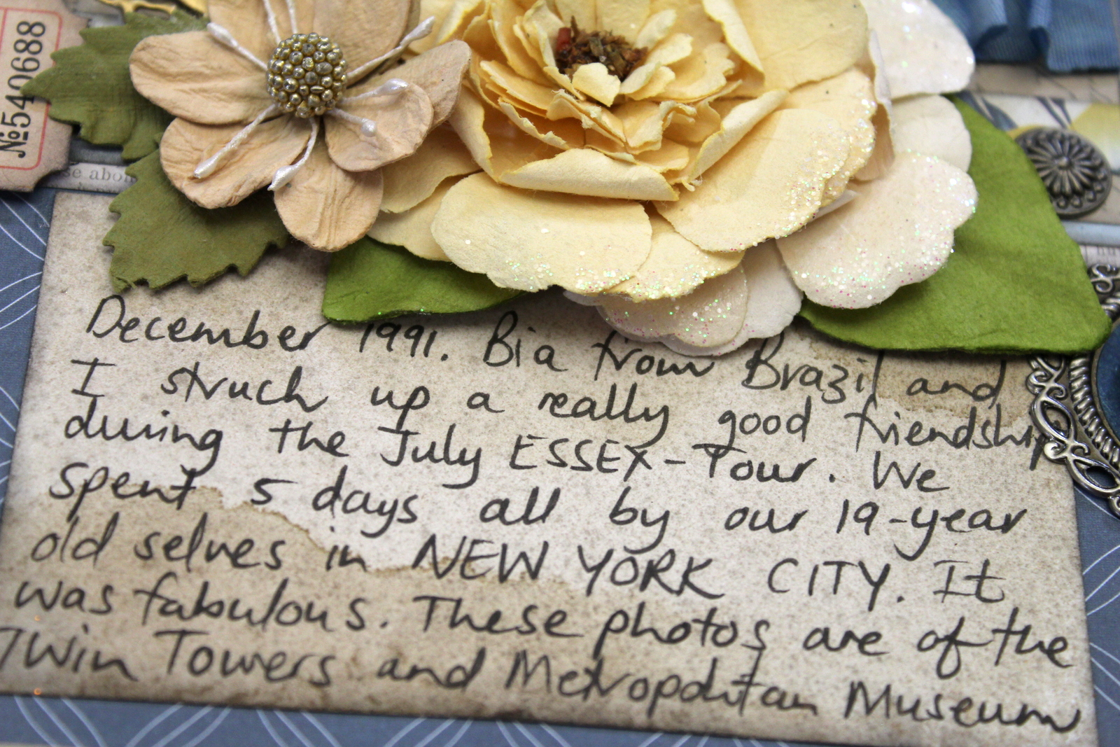 i have wanted to scrapbook these pages of a trip my friend from Brazil and i took to NYC for MANY years. when the Kaisercraft Antiquities Collection was launched, i knew that it would be the perfect papers to use some of the photos.