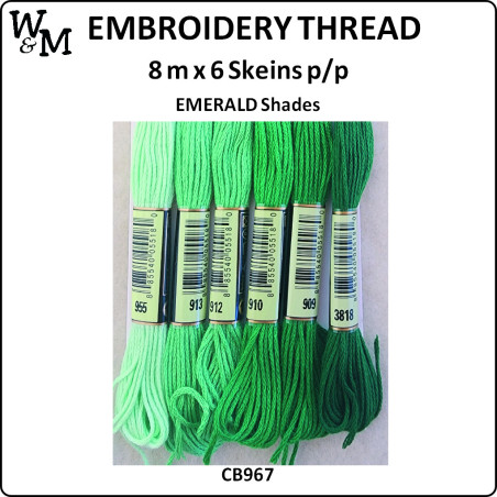 W&M Embroidery Thread EMERALD Shades 8m x 6 Skeins