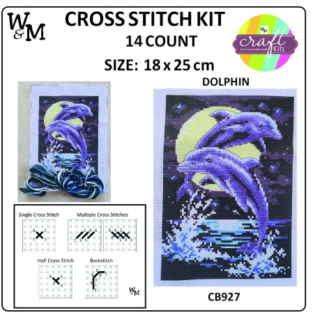 W&M Cross Stitch KIT DOLPHIN 14ct 18 x 25cm