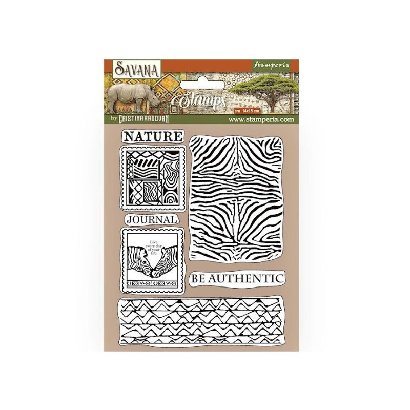 Rubber stamps made to adhere to the Stamperia acrylic block (not included). Long duration, easy to clean. Perfect for scrapbooking! This package contains Zebra Texture, Savanna: a set of seven stamps on one 5.5x7 inch backing sheet. WARNING: Choking Hazard- small parts. Not for children under 3 years. Imported.