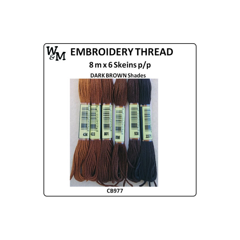 Embroidery Thread DARK BROWN Shades 8m x 6 Skeins